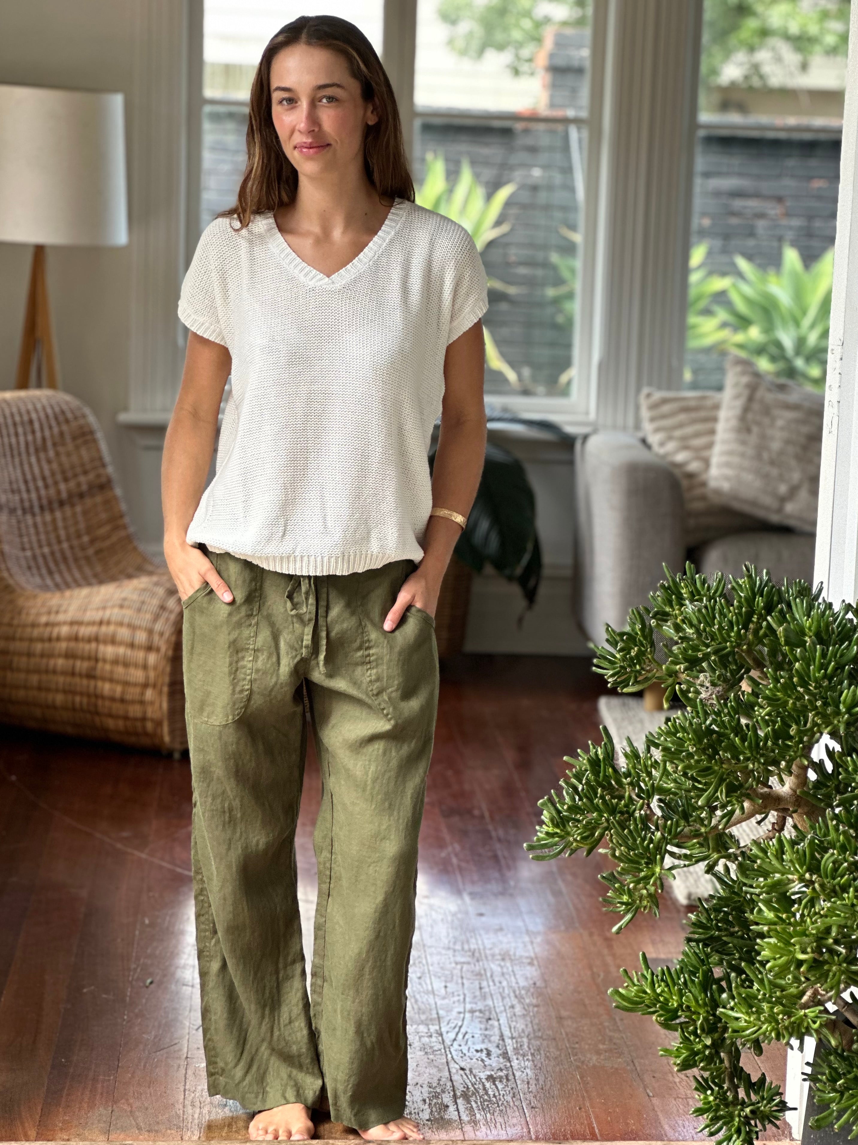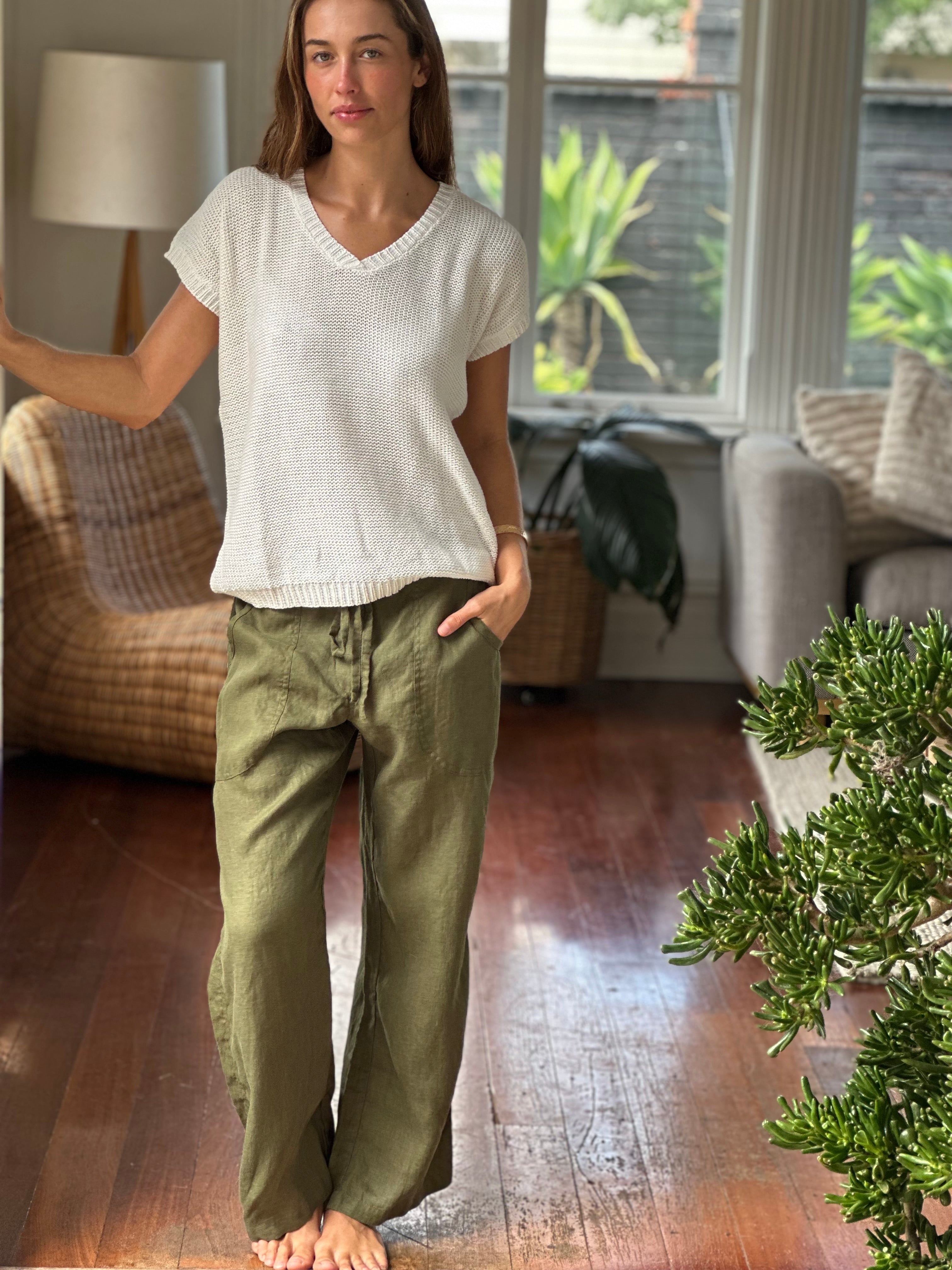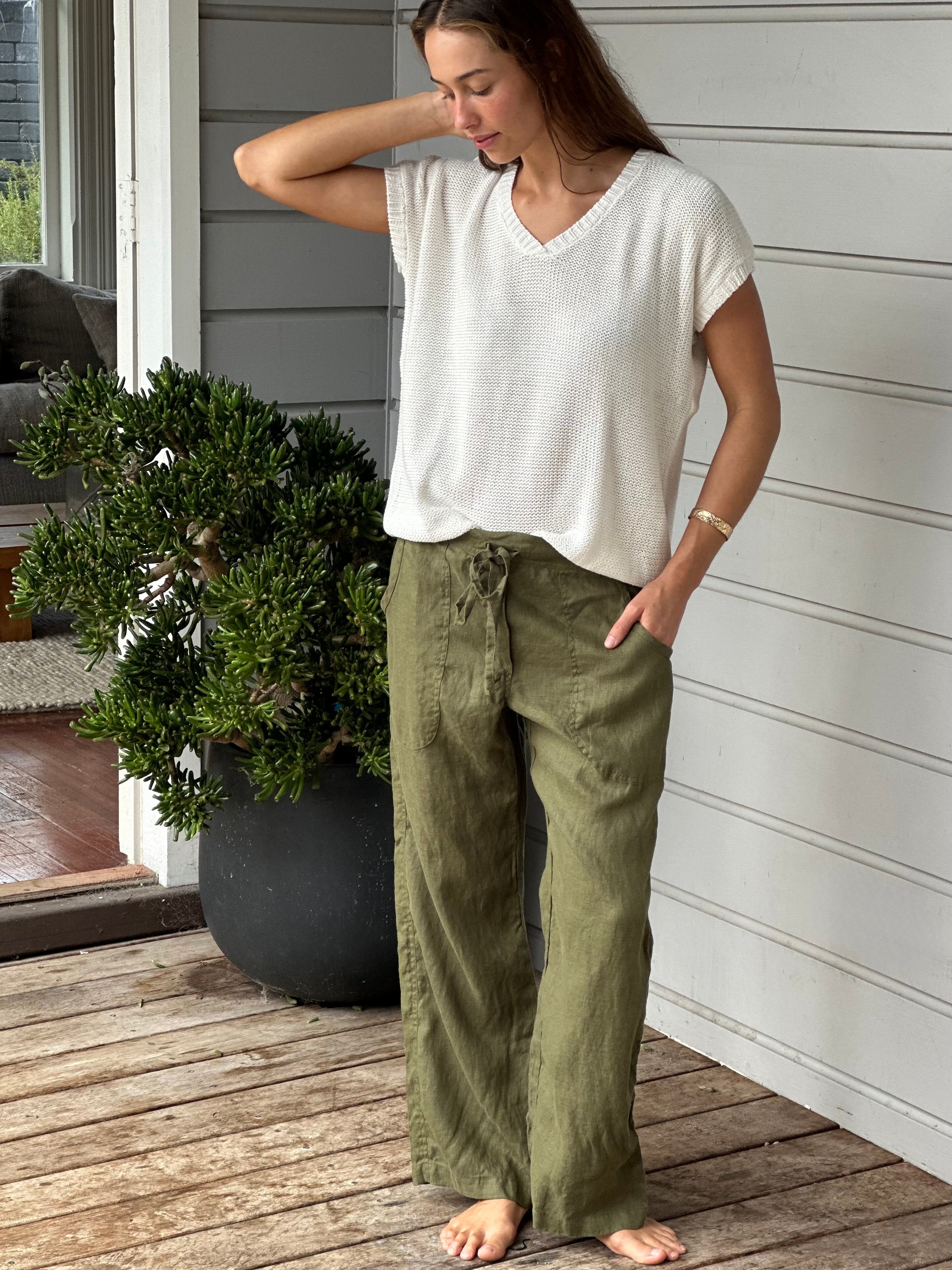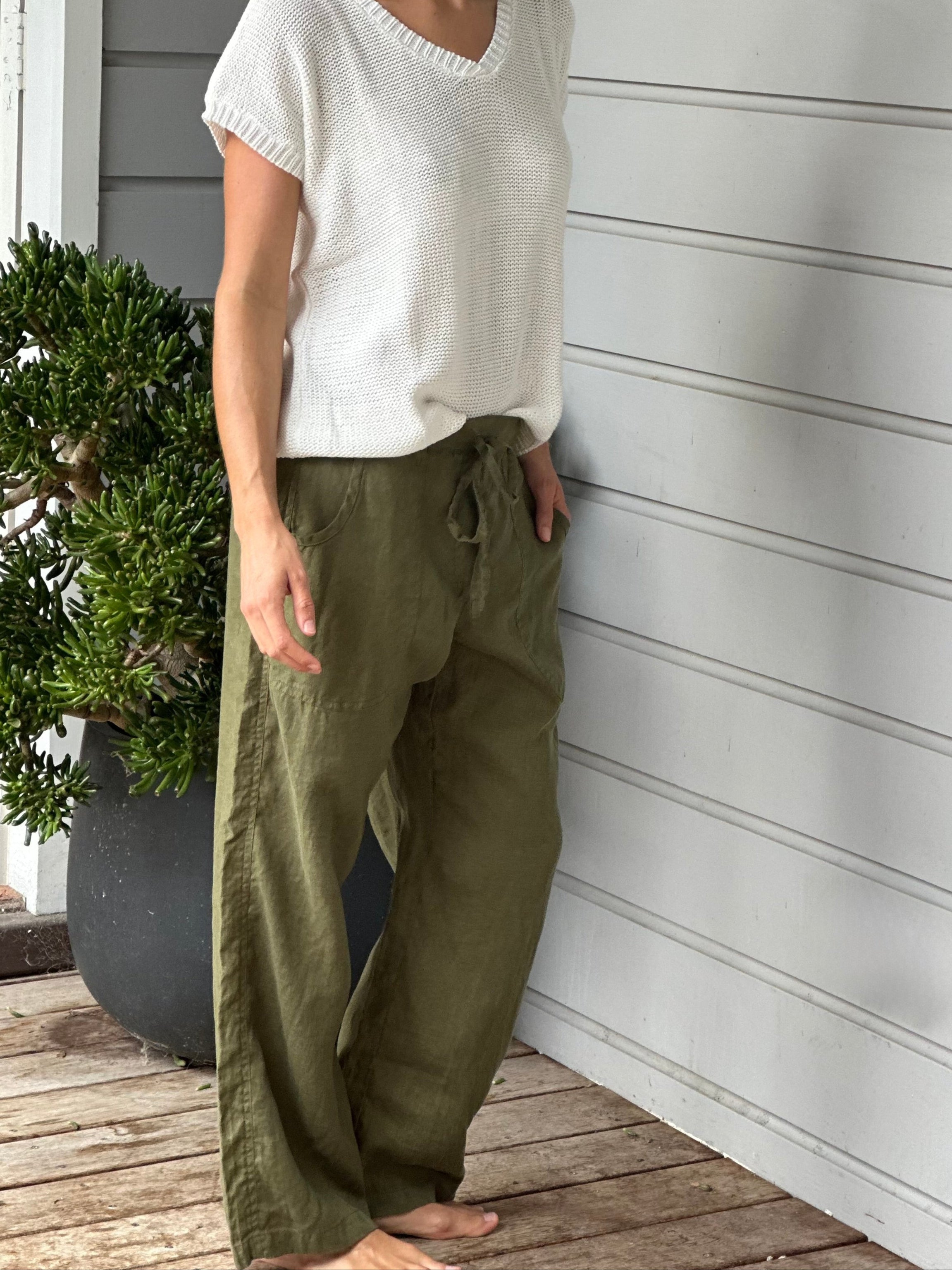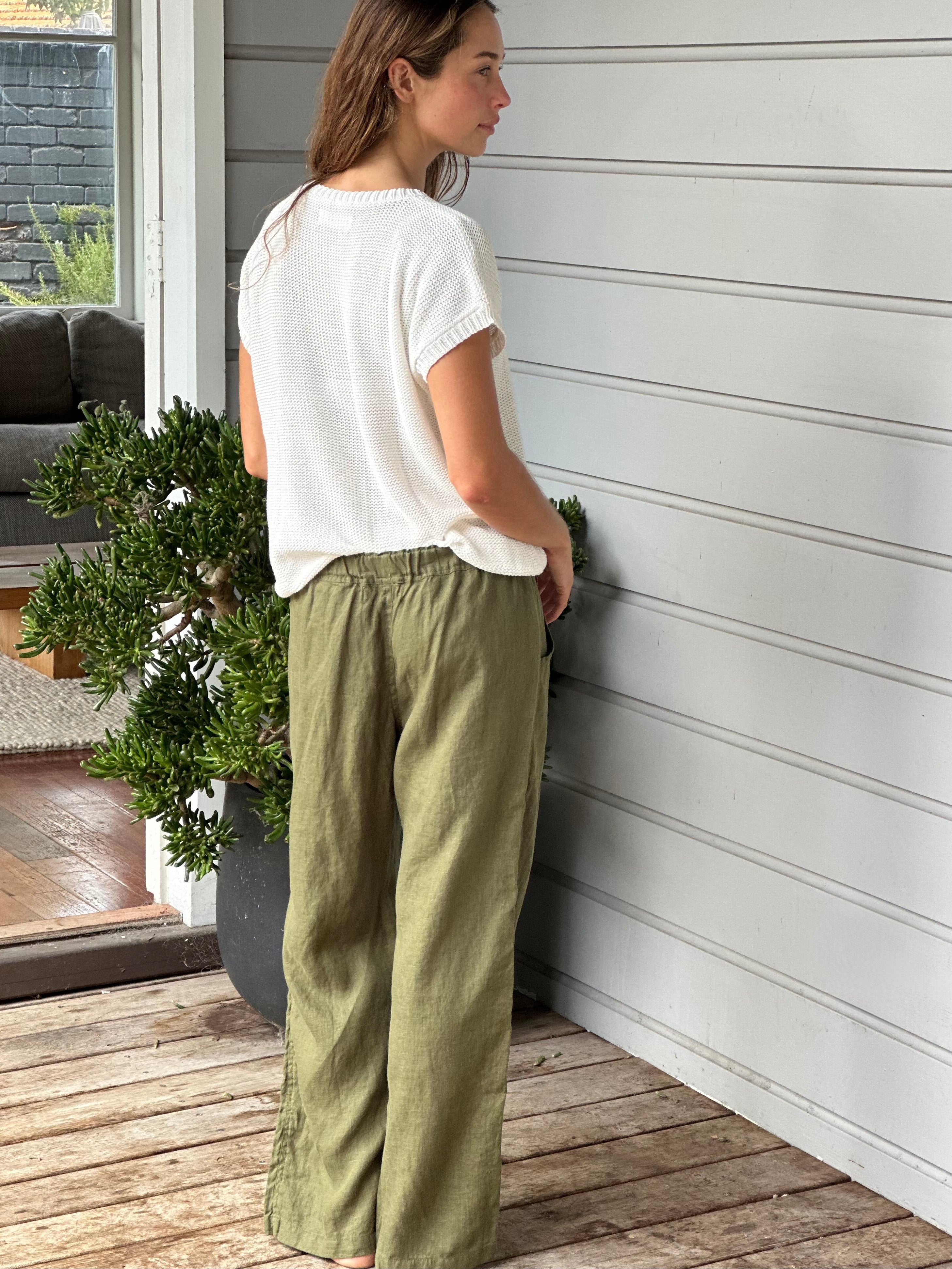 Be the first to review “fleur straight leg pants – army linen”